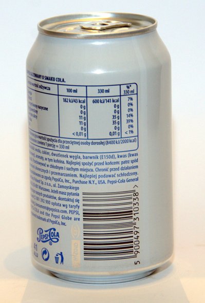 Pepsi 330 ml ean 5900497310338 Text on the label: PL + Label on request